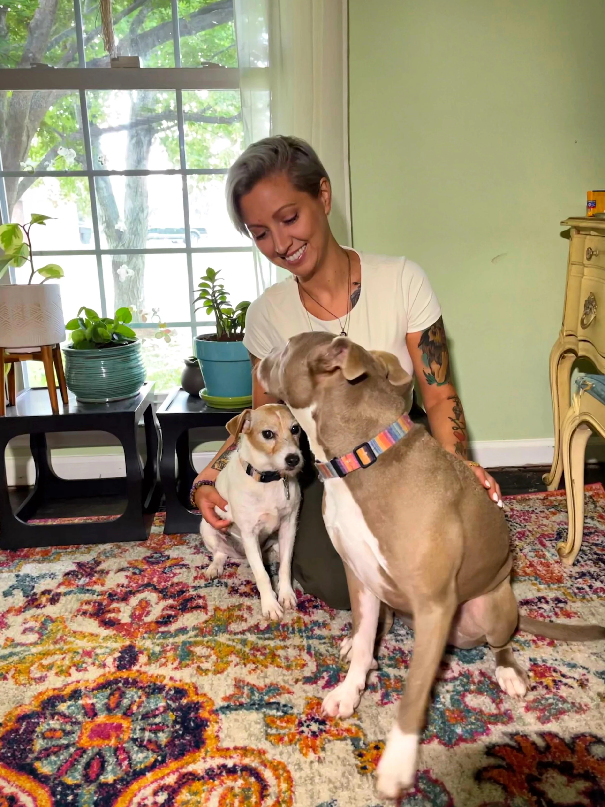 Myself and my furry kids, Posey and Howie! (It was just about impossible to get them to sit still.)